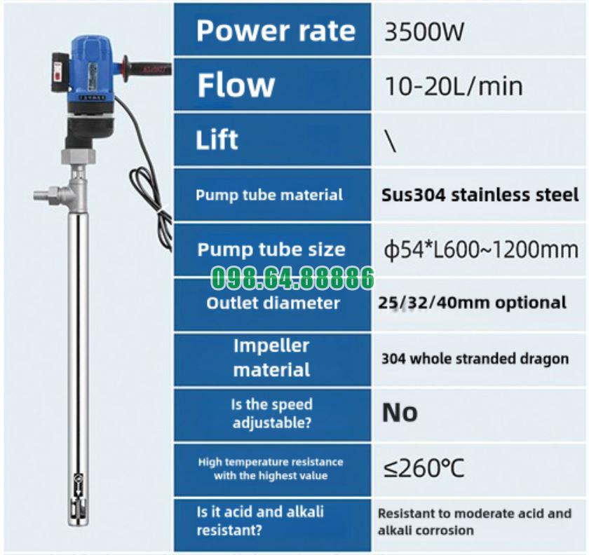 Bơm điện cầm tay dạng trục đứng JDT-3500W-JLG260 vận hành linh hoạt trong nhiều điều kiện nhiệt độ