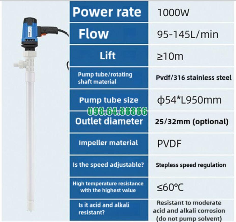 Bơm điện gắn thùng phuy model JDT-1000W-PVDF