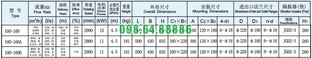 Máy bơm đa tầng cánh trục đứng, bơm lắp thẳng trục ISG100-160A, IRG100-160A 11kw, 93.5m3, 28m