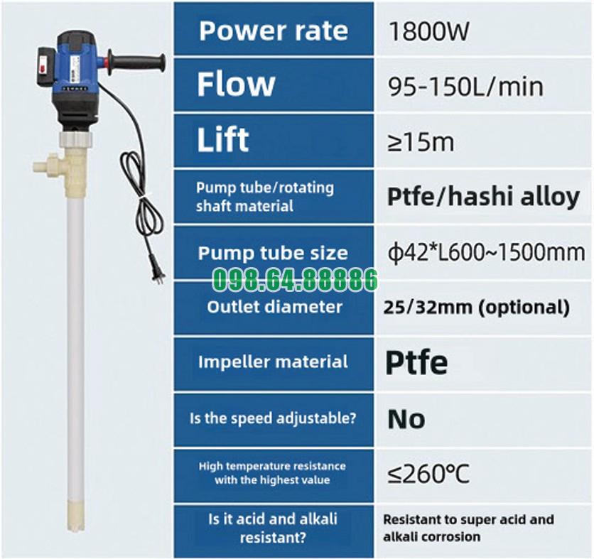 Máy bơm điện chịu nhiệt 260°C JDT-1800W-PTFE