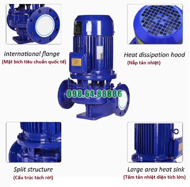 Máy bơm lùa trục đứng, bơm lắp thẳng trục đứng ISG100-250, IRG100-250 11kw, 100m3, 20m